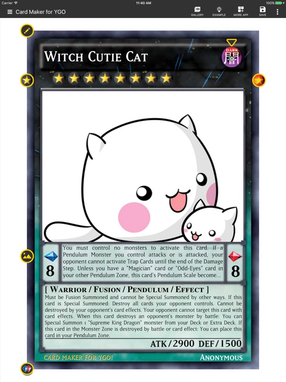 Card Maker for YugiOh Duel TCG is just a tool and in no way affiliated with or endorsed by Konami Digital Entertainment. YuGiOh content and materials are trademarks and copyrights of Konami Digital Entertainment. This app has been built by YugiOh fans.