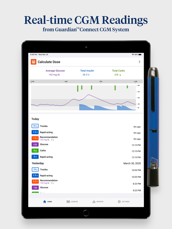- See the effect insulin and meals have on your glucose in a single integrated view