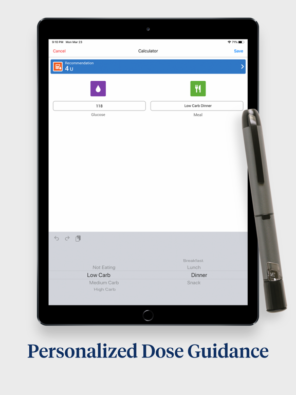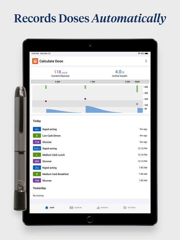 Why are you still using a pen that doesn’t track when you dose and how much you took? InPen records all of your doses automatically. The app provides personalized insulin recommendations based on your glucose level, meal size, and insulin still active from prior injections.