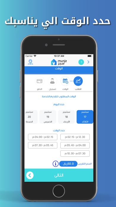 حدد موقعك والوقت الذي يناسبك لزيارة فريق الصيانة