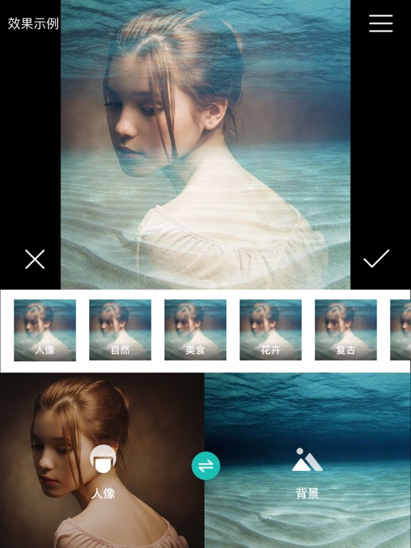图片合成器是一款超简单的双重曝光图片合成编辑器,能将两张照片融合呈现出双重曝光效果。 App内置了丰富的背景,让您的照片更有质感。 - 支持调整曝光的强度,叠放次序 - 支持对曝光结果进行滤镜处理 - 支持对曝光之前的照片预先抠图
