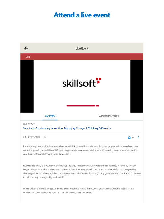 Please note: This app requires access to Percipio and an active Skillsoft content license.