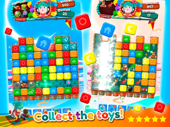 - Tap to crush 2 or more cubes of the same color to eliminate them.