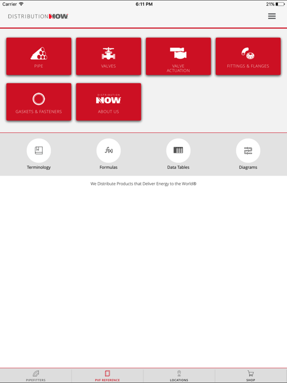 DistributionNOW’s PVF Reference app is an easy-to-use resource for industry standard terminology, specifications, practices, and reference tables related to pipe, valves, actuation, fittings, flanges, gaskets, and fasteners.