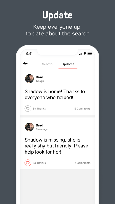 Regardless of your situation, our app has the tools necessary to make it happen. We create street fliers for you to print and post. We provide moral support and detailed instructions to help bring dogs and cats home where they belong. We’re with you every step of the way, every leg of your search, and we’re dedicated to saving dogs’ and cats’ lives.