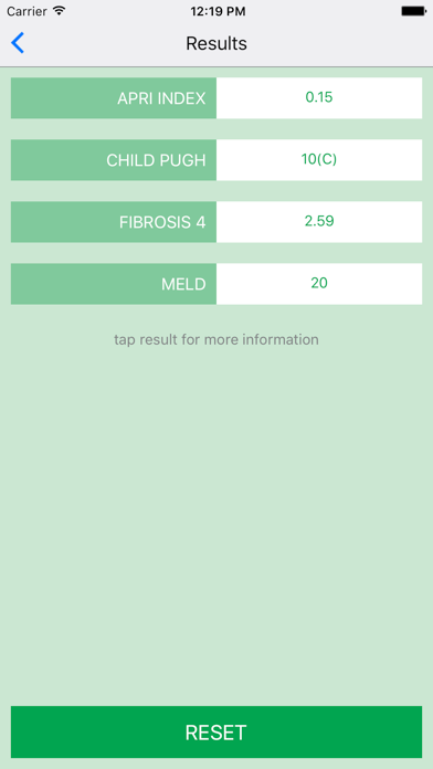 The calculators in this application are designed to help you with the evaluation of hepatitis C patients. You will have to input the necessary patient information only once, and if the information is complete it will give you the simultaneous scores for the following calculations: