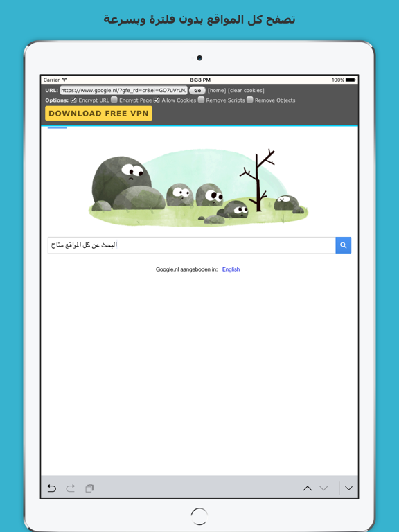 تطبيق متصفح بروكسي لعملية ازالة فلترة المواقع والتصفح بسرعة اكبر وبخصوصية أعلى, يمكنك من خلال التطبيق اختيار البروكسي الذي تريد ومن ثم فتح موقع جوجل لتصفح اي موقع تريده وبدون مشاكل. ملاحظة مهمة جدا ** انا غير مسؤول عمن يستخدم البروكسي فيما يغضب الله عزل وجل ** لا تنسوا تقييم التطبيق والمزيد من الاقتراحات