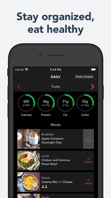 When you've finished a meal, tap Eaten to automatically log your calories and macros with Apple Health.
