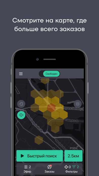 -возможность фильтровать заказы в эфире в соответствии с выбранными критериями