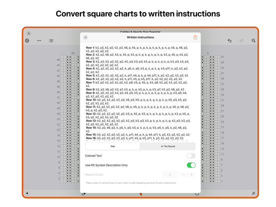 You can adjust your chart layout for knitting flat, in the round, corner to corner, machine knitting and even left handed.