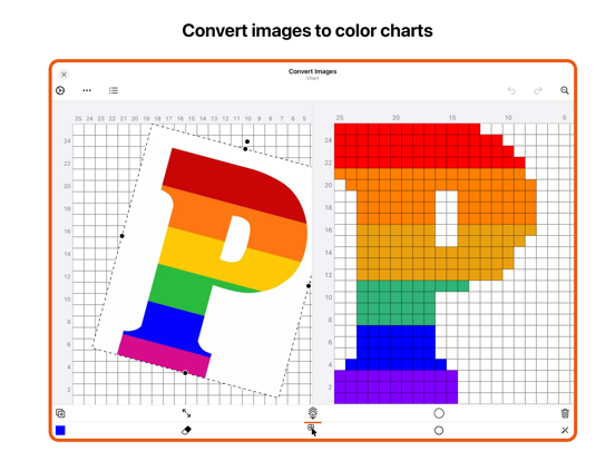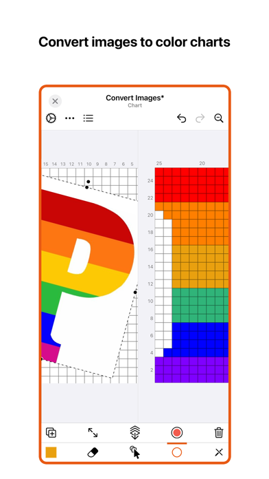 Convert your square charts to written instructions end place images on a chart to convert your canvas to a color chart.