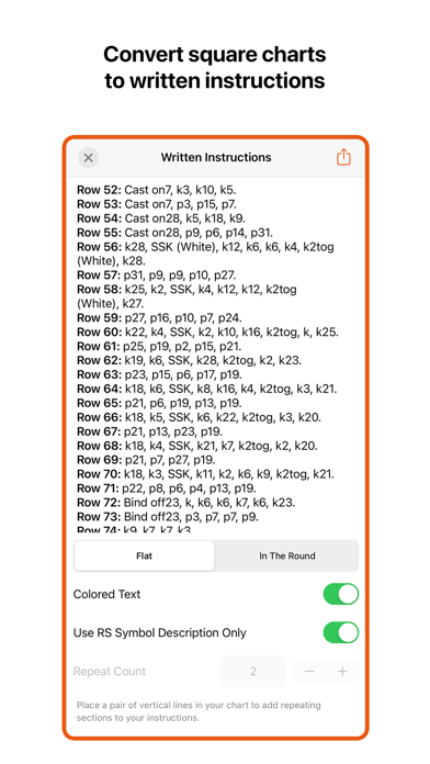 With Knitting Chart you can draw your own knitting and crochet patterns. Import PDF files from your device or Ravelry and keep track of your progress with the Working Mode, row counters or PDF highlights.