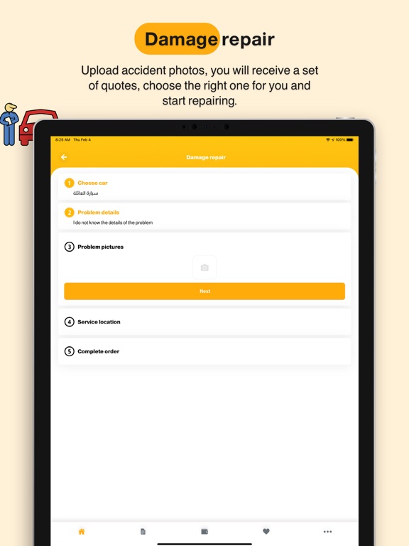 we receive your car officially and transfer it to trusted and certified repair stations with a report given to the client that has information about the damage and the estimated cost of the repair before the process begins.