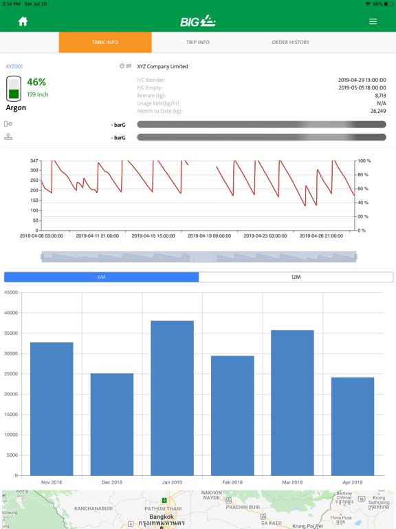 Exclusively for BIG customers this application offers an innovative way to monitor liquid tank inventory and gaseous consumption levels at your facilities at any time. Simply log in and select your equipment to see the real-time information at your site or installation.