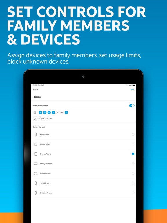 • Create Profiles, set Parental Controls and downtime schedules to manage your family’s screen time at home