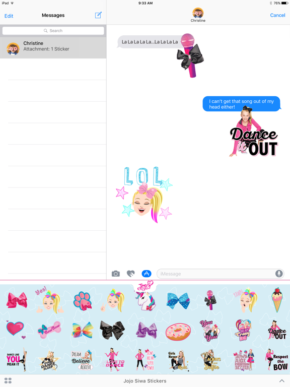 Dream crazy big with the official JoJo Siwa Stickers iMessage App! Featuring JoJo Siwa's signature style and expressive personality, you can now chat bigger, better, faster, stronger with these stickers on all your photos and in all your chat messages!