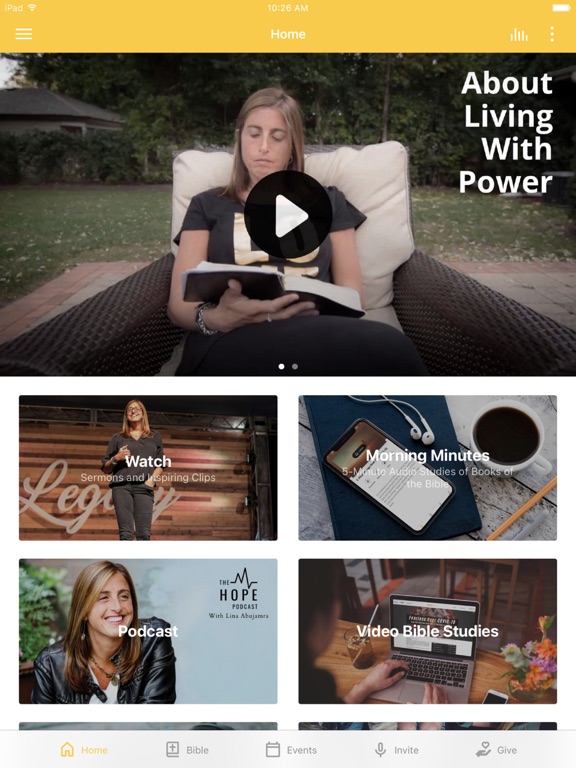 The Living With Power app features content from Lina AbuJamra, author, Bible teacher and founder of Living With Power Ministries based in Chicago, IL, and reaching the whole world.