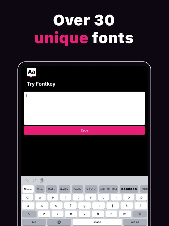 Fonts by Fontkey is an App and Keyboard that lets you use unique fonts to customise your social media: Instagram, Snapchat, Tiktok, Roblox, Twitter, iMessage, Tumblr, and more!