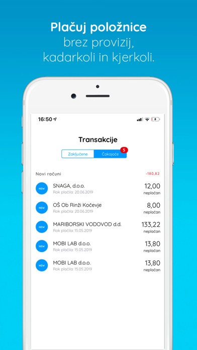 • Brezplačno plačevanje položnic ter avtomatski prejem e-računov v denarnico.