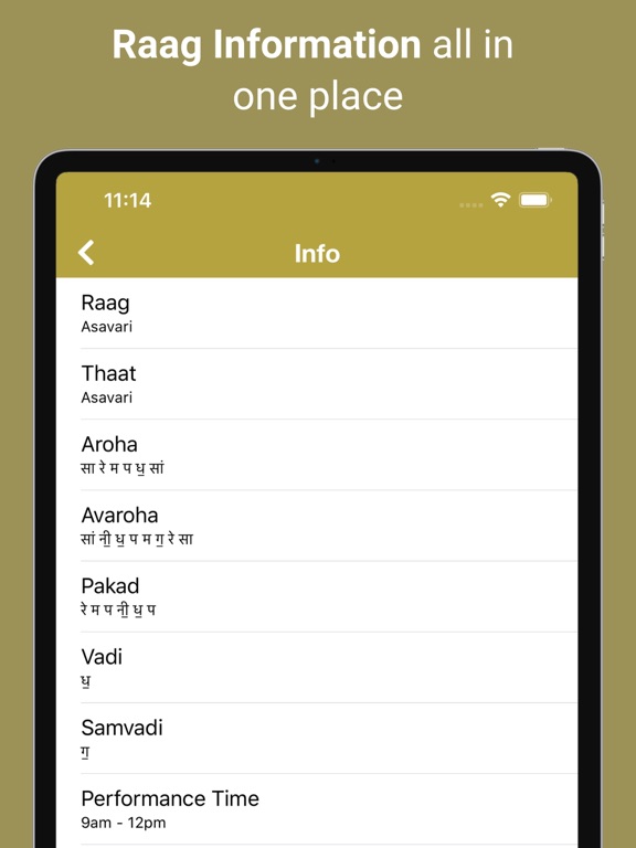 * 50 Raag based on 10 Thaat. [** Free version has 10 Raag].