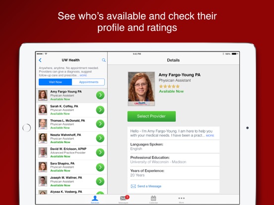 The process is fast and easy. Download the UW Health Care Anywhere mobile app and set up an account – you’ll be one step ahead when you need to see a doctor.