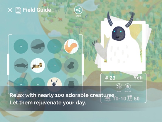 ・100+ animals: Desertopia has a collection of 100+ creatures and 25+ terrain types. Also, more than 15 legendary creatures populate the island when certain special conditions are met. Some of them only pop up during festivals and holidays!