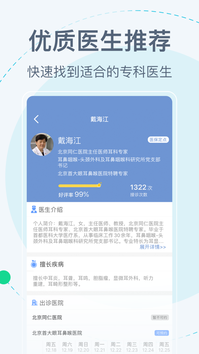 北京挂号网app是北京市免费预约挂号平台,囊括北京36个专科的医生号源,汇聚耳鼻喉科、皮肤科、骨科、口腔科等1000余位专家医生,提供号源查询、预约挂号、医生简介评分等服务。为到北京地区医院就诊的患者提供了更方便更多渠道的就医选择,充分体现互联网+医疗的便捷高效优势。
