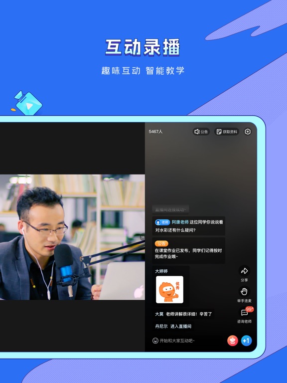 1、互动录播,支持举手、送花、连麦等互动功能活跃教室学习气氛,激发兴趣,更好集中注意力;