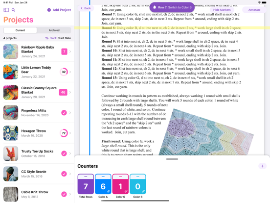 • Unlimited, customizable row counters viewable alongside your pattern.