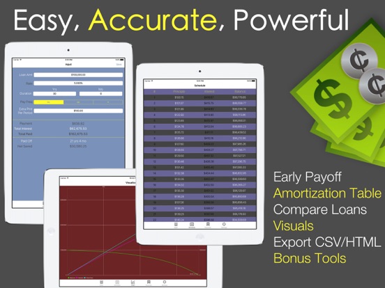 Let's face it. There's a lot of loan calculators out there. Why choose this one? Well it's easy to use, the font is fairly large and it's got lots of colors. If you're still interested here's more: