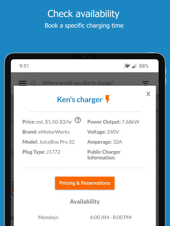 -Filter by electric car charger connector type (J1772, Tesla, NEMA 14-50 and more), charging speed, daily and hourly availability, price, and instant booking.