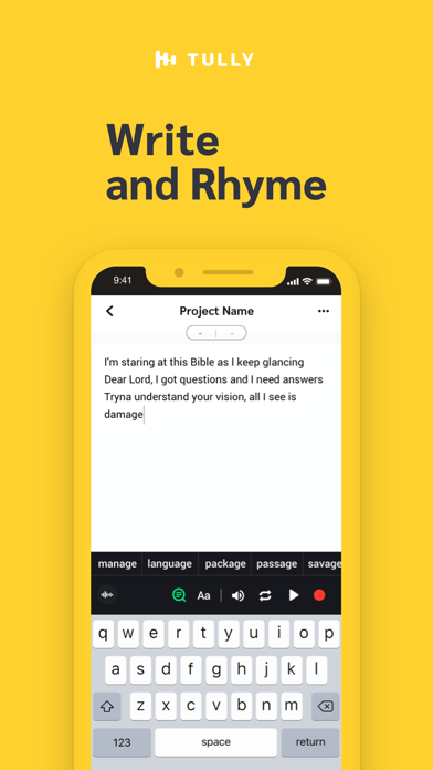 The Tully App was created to allow recording artists and songwriters to play, write, and record song ideas all within one application. Artists can share their projects with their engineer before studio sessions, allowing instant access to the audio file, lyric sheet, and recording ideas.