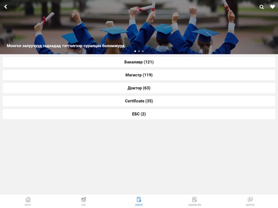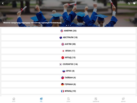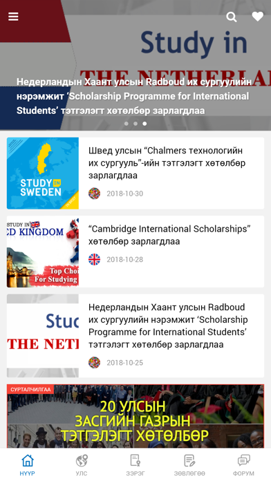 Гадаадад тэтгэлгээр суралцахыг хүсэгчдэд зориулсан тэтгэлэгт хөтөлбөрийн нэгдсэн аппликэйшн. Та энэхүү аппликэйшнийг татаж авснаар Америк, Австрали, Англи, Япон, Герман, Хятад, Солонгос, Орос, Тайван болон бусад улс орнуудын их дээд сургууль, коллежийн тэтгэлэгт хөтөлбөрийн мэдээллийг цаг алдалгүй авах боломжтой.