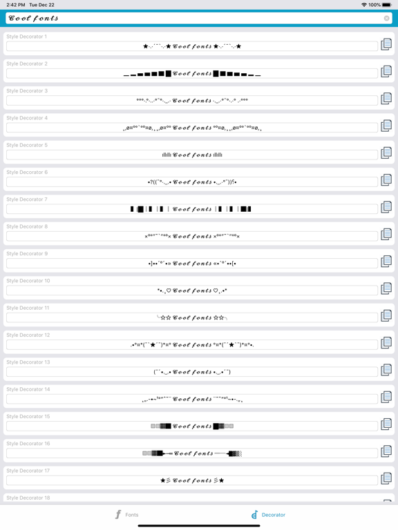Font Generator - Font Changer is a handy tool that helps convert normal text to different stylish cool font text, thus it helps create text fancy fonts. This font generator is useful for Instagram, Facebook, Twitter, Whatsapp, Snapchat, Tiktok, ...