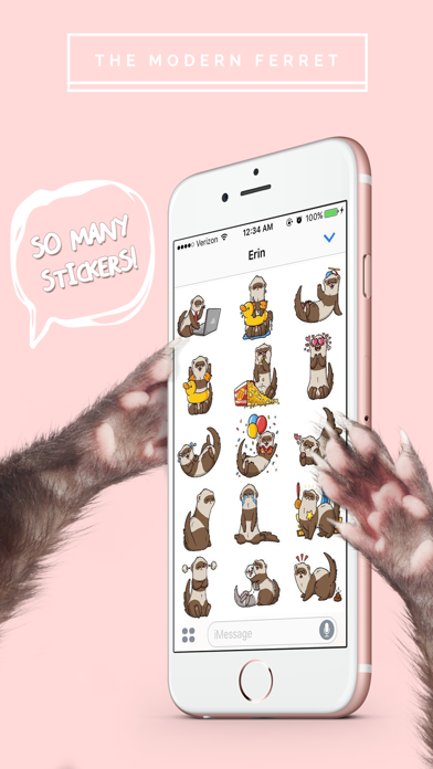 Step 3: Tap the Ferret Stickers by The Modern Ferret icon and start sending stickers! (You may have to tap "Store" first, then under the "Manage" tab, toggle on "Ferret Stickers by The Modern Ferret").