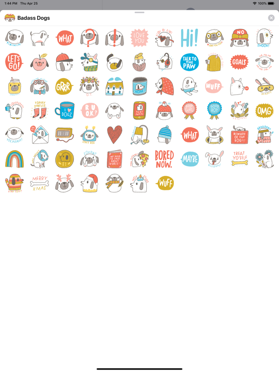 These are 74 stickers of dogs and other essentials to take your iMessage communication to the next level. Maybe even the TOP level. You know what I mean.