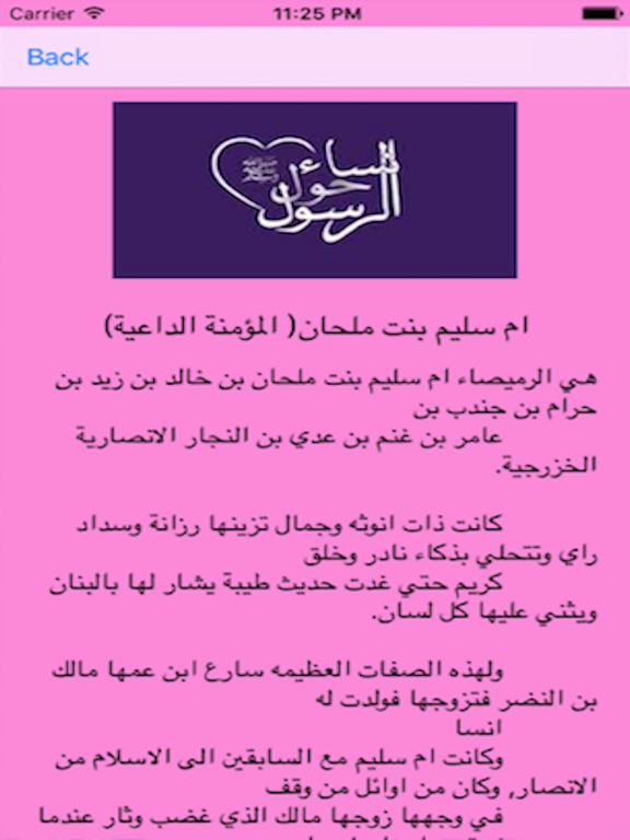 يحتوي التطبيق علي قصص وسير امهات المؤمنين والصحابيات