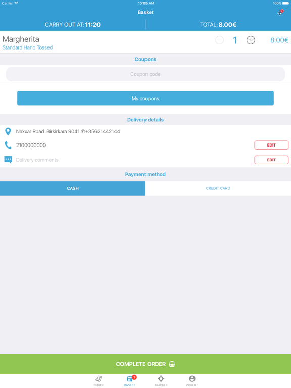 * Select your favourite payment method: Cash or Credit Card
