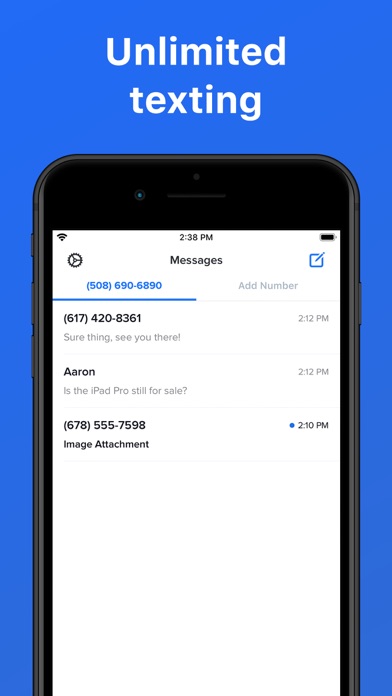 Send and receive unlimited text messages to any US phone number. This includes photo messages!