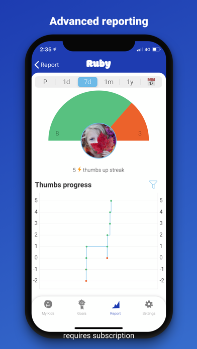The ability to sync the app across multiple devices and family users can be beneficial. This feature may come in handy particularly with Grandparents/Nanny's/in-home-carers, or families with shared custody agreements where children may live in multiple homes. Goals, Thumbs Up and Downs and reports are shared between all devices in real time.