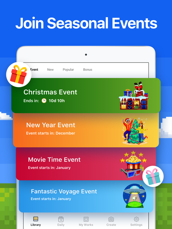 Get hours of relaxation and fun! Discover tons of artworks or create your own pixel art. Color. Relax. Enjoy!