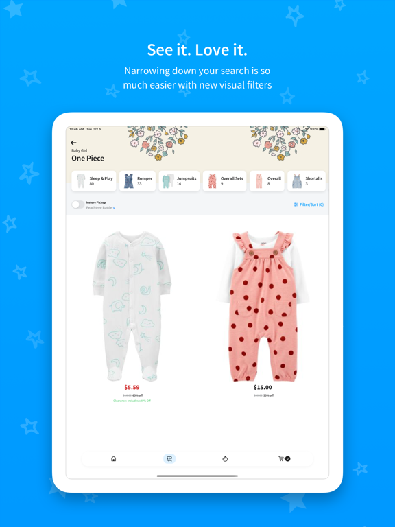 Shop the entire assortment of Carter’s®, OshKosh B’gosh® AND Skip Hop® together anytime, anywhere. For the first time ever, you’ll be able to simultaneously search all three brands; even search items by color at super speed.