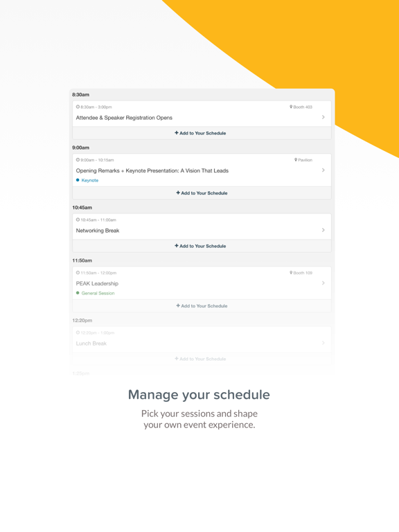 - See what’s coming up next at the event and manage your schedule