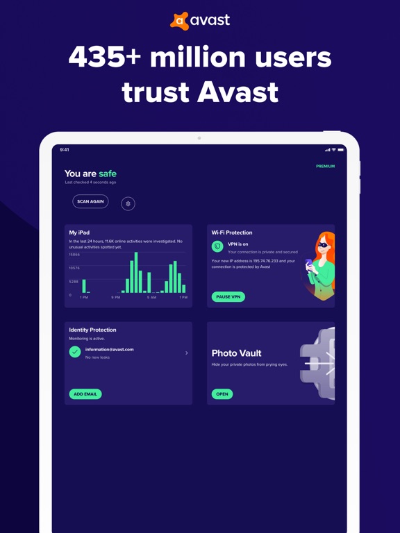 Protect your device from online threats and intruders, browse safely on public Wi-Fi, and stay in control of your online accounts.