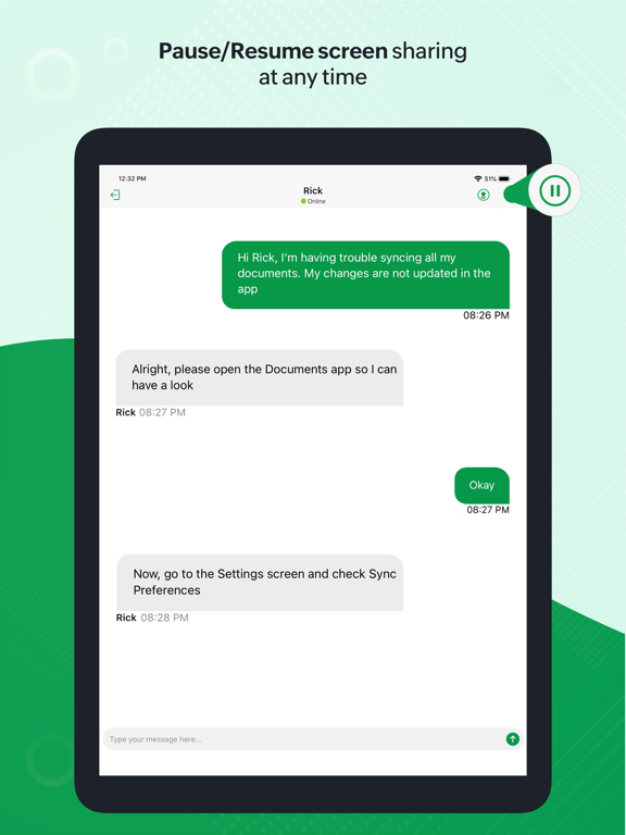 5) Although you'll be sharing your screen directly with the technician, you're always in control as you can choose to stop/resume screen sharing at anytime.