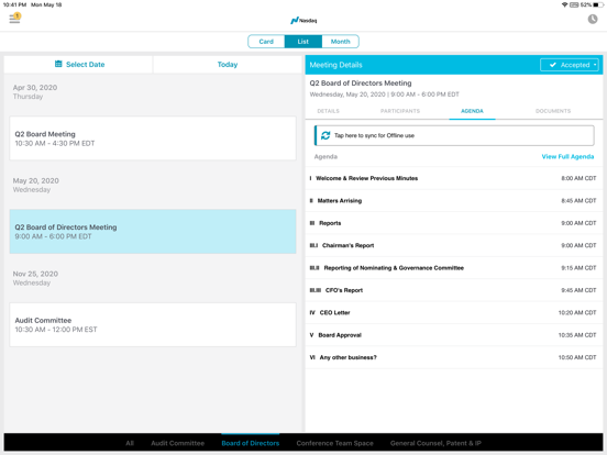During a meeting, Nasdaq Boardvantage offers flexibility in terms of options for in person or virtual meeting scenario, making it a go-to application wherever the meeting may be.