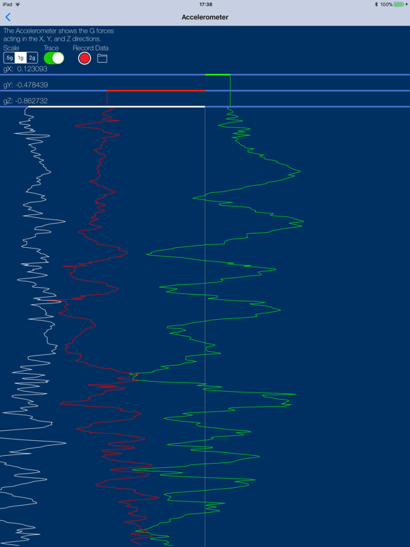 - See the g-forces on the X,Y,Z axis and see them traced over time.
