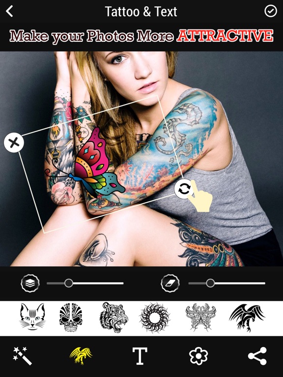 ï Add Tattoo, Text, Filters, Doodles on your photos.