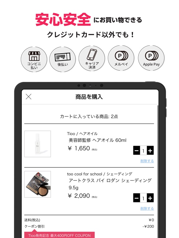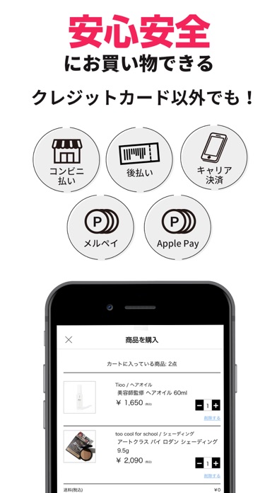 NOINでは「クレジットカード」での支払いの他にも「キャリア決済」、「コンビニ支払い」、「Apple Pay」、「メルペイ」、「エポスかんたん決済」、「後払い」に対応!
