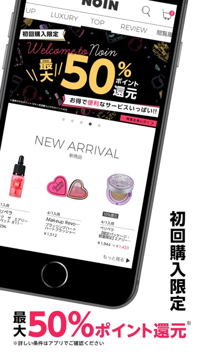 NOINで売れている人気コスメや、人気急上昇コスメをチェックできます。